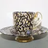 Murano - A pretty Daisy Millefiori studio glass cup and saucer and millefiori glass pin badge. yellow and white flowers on black ground. gilt and clear glass scrolling handle of cup. saucer diameter -…