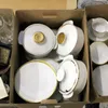boxes of boxed glasses and other tableware