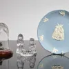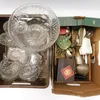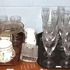 A mixed lot of glassware including champagne coups, wines, leather cased beakers together with a small quantity of boxed Wedgwood collector's plates and other wares