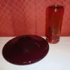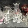 A collection of 20th century cut glass lead bowls, dishes including mid 20th century ruby glass decanter, glasses etc.