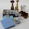 Boxed Limoges crystal claret jug, champagne flutes, large white and red wines, one a/f