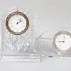 A PAIR OF CIRCULAR JARDINIERES AND A WATERFORD CRYSTAL MANTEL CLOCK (3) — Modern The jardinières of circular form with everted rims, decorated with gilt-highlighted flowers and birds, 17.5 cm high; To…