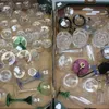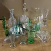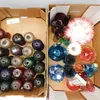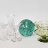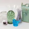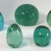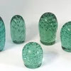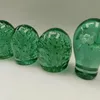 5 Victorian green glass dumps, 4 smaller ones and one large sphere / dome dump all slightly different shades of green , 3 have plant / vase interior sphere dump stands 10 cm high and a circumference