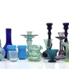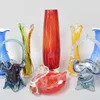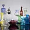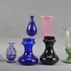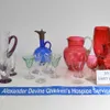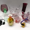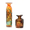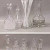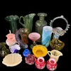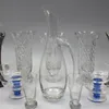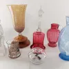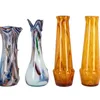 A large collection of glass vases 20th C Different colours shapes and designs, bohemian style vases and 2 large wine glasses/ vases one in amber and one in blue glass, and a masked spouted claret jug