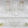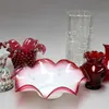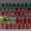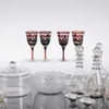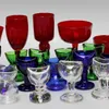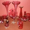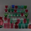 Large collection of decorative glasses to include 9 red glasses, 11 large glasses, 9 medium glasses and 10 small glasses.
