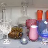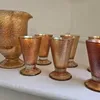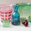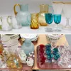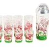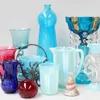 A mixed collection of 1950s and 1960s retro desert sets, drinking glasses, vases, wine glasses, bakelite topped jugs and more.