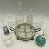 5 boxes of assorted glassware to include; glass bowls, Pall Mall glasses, a coloured glass jug part set, plated tantalus frame and associated bottles, vases etc. (5)