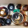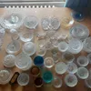 A large collection of pressed glass items, mainly candle tea light holders, varying colour ways, to include knife rests and other pressed glass Condition, some wear and rim nibbles a large % of the l