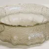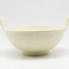 A 19th century Sowerby Queens Ivory pressed glass, twin handled 'New bowl'. Lozenge to base, cracking to rim