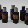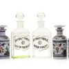 A group of six 19th century blue glass chemist's drug jars, each with printed paper label and tin cup cover. 25cm high
