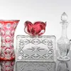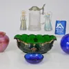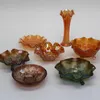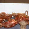 Carnival glass in amethyst and marigold popular in US; British pressed glass (Davidson cloud glass) more niche