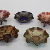 Three Peacock and Grape carnival glass dishes, each with serpentine crimped rim, 23cm, together with a pair of cherry patten footed bowls (5)