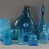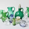 6 pieces of blue and green glass to include vaseline glass examples. (6)