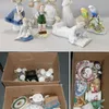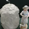 A large crackle glass punch bowl and cover, 34cm high and an early 20th century continental bisque figure of a girl and a goose, 29.5cm high (2)