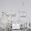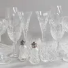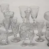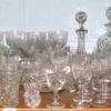 A good lot of suites and part suites of cut glassware. Including brandy, wines, sherry, port, Hi - ball, whisky, sundae dishes etc. Together with a slice cut neck water jug, fuit bowls, trumpet and ot…