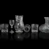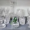 A large selection of cut and moulded glassware. Eight wine glasses, twelve tumblers, six Brandy glasses, Irish coffee glasses, jugs, bowls, jars and a lamp