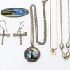 An oval silver mounted butterfly wing brooch and circular butterfly wing pendant and chain, along with a pair of silver 925 dragonfly drop earrings, white metal chain etc (1 bag) Further details: wear…