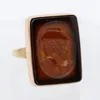 A large carved agate intaglio and 9ct yellow and rose gold ring, comprising a rectangular agate carved to depict a male figure, length approx 22x15mm, size R, total gross weight approx 7.4gms along w