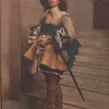 19th century English School, a full length silhouette portrait of a lady holding a letter. Cut card and ink, heightened with gilt. 25.5 x 16.5cm. Rosewood glazed frame
