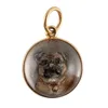 A PUG REVERSE PAINTED INTAGLIO PENDANT — The pug intaglio mounted on a mother of pearl ground, with an unmarked gold casing, measuring approximately 18mm in diameter, gross weight 5.2 grams