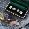 A 20th Century Essex Crystal mounted pin, comprising a circular form depicting a pheasant, diameter approx 20mm, unmarked yellow metal total gross weight approx 6.4gms Further details: good minor tarn…