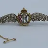 A superb RFC diamond sweetheart brooch. A jewellers handmade unmarked example in fine condition. The cap in translucent red enamel. 9 x 2.5cm. 13.25gm