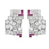 Pair of Ruby and Diamond Clips of geometric...