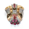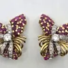 gold diamond and synthetic ruby set single clip brooch