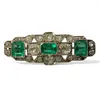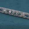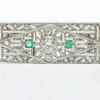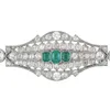 An art deco white metal diamond and emerald brooch set with a central baguette cut emerald and two emerald cut emearlds the larger approximately 0.60ct, oval cut diamonds and small diamonds of typical…