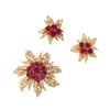 A retro Cartier style synthetic ruby and diamond set two tone gold spray brooch, circa 1950's, the centre comprising three fluted leaves in gold, with central raised prong stamen rub-over set with two…