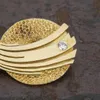 contemporary 18ct gold diamond set circular pin brooch