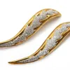 pair of Continental diamond set two colour gold flame or leaf brooches