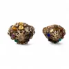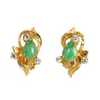 pair of carved jade, onyx, ruby and diamond clip-on earrings