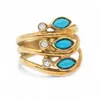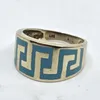 A 14ct. gold and turquoise enamel ring, of tapering form, the front inlaid with turquoise enamel decoration, size UK N. (gross weight 5.5g) Further notes: condition commensurate with age, stamped "585…