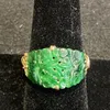 A Jadeite and yellow metal ring, 5.2g, O and Jadeite and yellow metal bracelet, 11.6g approx