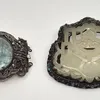 TWO CARVED ROCK CRYSTAL AND NEPHRITE BROOCHES