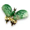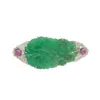 A SAPPHIRE AND GREEN HARDSTONE LEAF BROOCH
