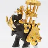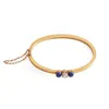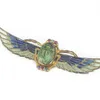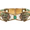 AN EYE OF HORUS HINGED BANGLE — With coral, turquoise, lapis lazuli, onyx and mother of pearl detailing, with box clasp and two safety clips, with Egyptian mark for 18ct gold, inside diameter measurin…