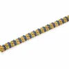An 18ct. yellow gold, diamond and turquoise "evil eye" bracelet, having navette form openwork "evil eye" to centre set round cabochon turquoise with round brilliant cut diamonds to border, to fine cab…