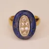 18CT GOLD LAPIS LAZULI AND DIAMOMND RING. Total gross weight is approximately 9.15g. The head of the ring measures approximately 17mm x 13mm x 6mm depth. Set with 6 small diamonds. Size N. Condition r…