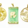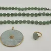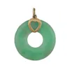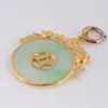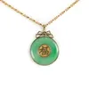 A 14ct. gold mounted jade disc pendant, set pierced gold character to centre, diameter 5.2cm (gross weight 25.4g), together with a 9ct. gold and jade ring, set oval cabochon jade, size UK M- (gross we…