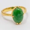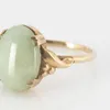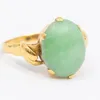 A jade and yellow metal dress ring, comprising an oval jadeite approx 10 x 7mm, claw set, to a band with nipped shoulders, Chinses mark assessed as 18ct gold, size L, total gross weight approx 3.6gms