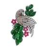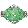 A diamond and jadeite white metal pendant/brooch, comprising a carved bird, with a bark like border claw set with small round brilliant cut diamonds, size 50mm, roller clasp, stamped 18k, total gross