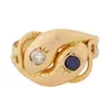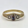 An unusual 18ct. yellow gold, enamel and white gem stone ring, having white metal lozenge shaped panel with enamelled oval picture of Christ to centre, with old-cut white gem stone to either side, the…