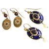 pair of Art Deco style carnelian, silver, enamel and moonstone drop earrings