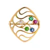 A GOLD GEMSET BROOCH — Mounted with a round cut ruby, sapphire, emerald, diamond and a green garnet, in unmarked gold, measuring 27.3mm x 23.8mm, gross weight 3.7 grams