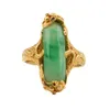 A jade and 22ct gold ring, comprising an oval cabochon jade approx 13mm, claw set, the shoulders with overlaid leaf decoration, size O, Brunei gold mark, total gross weight approx 5gms Further details…