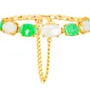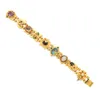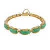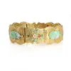 A JADE AND GOLD BRACELET — With panels of jade intermittently set with Asian characters, in 18ct gold, approximately 18cm in length, with box clasp and safety clip, gross weight 21.3 grams