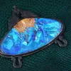 A Blue John and silver ring, set with an oval stone, width approx 24mm, split shoulders, size R1/2, weight approx 8gms Further details: good stones present some scratches, crazing to stone commensura