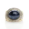 gold sapphire cabochon and diamond ring